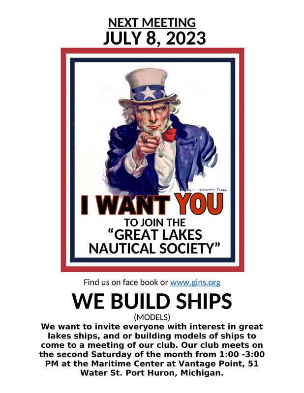 We want to invite everyone with interest in great lakes ships, and or building models of ships to come to a meeting of our club. Our club meets on the 2nd Saturday of the month at The Great Lakes Maritime Center at Vantage Point, 51 Water St., Port Huron, Michigan.